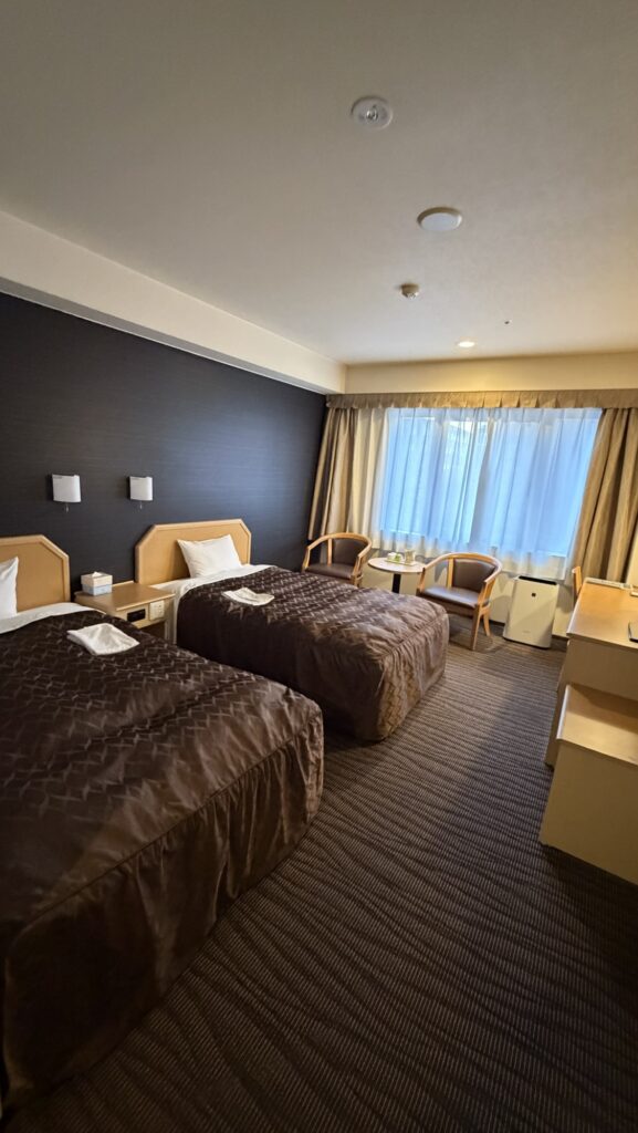 今回宿泊したツインルームは23㎡と、ビジネスホテルとしてはかなり余裕のある広さでした。